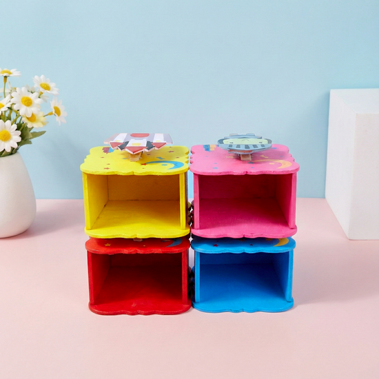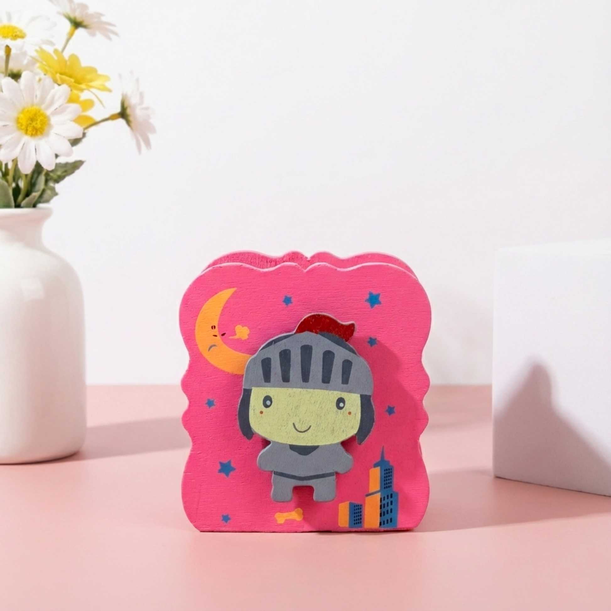 🎨 Vibrant 3D Craft: The characters are raised wooden cutouts that pop out from the holder, creating a fun 3D effect in bright colors like Blue, Yellow, Pink, and Red.