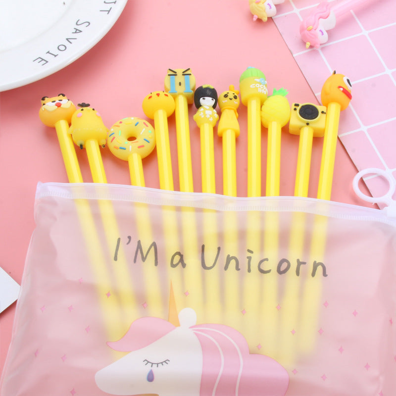 Package Includes: 1 x Yellow Series 10 Cartoon Gel Pen Set